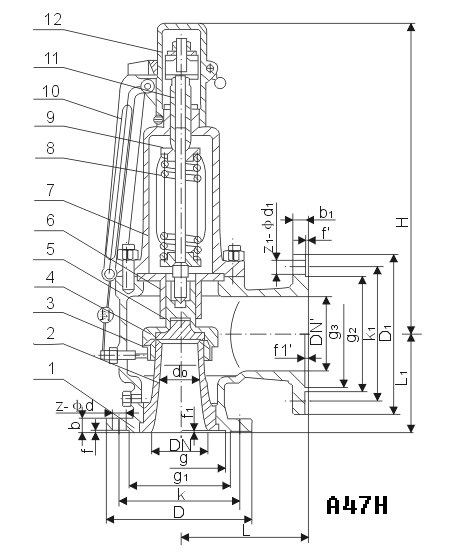 A47H micro-open safety valve with wrench spring is suitable for steam, air and other media equipment or pipelines whose working temperature is less than 350', as overpressure protection device.