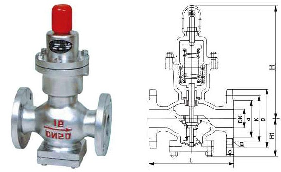 Y44H bellows pressure reducing valve is used in the pipeline of steam, air and water without corrosive medium whose temperature is below 200 C, so that the pressure of medium passing through the valve body can be kept constant to meet the needs of work. The inlet pressure P1 is 1.0-0.1 MPa, the outlet pressure P2 is 0.4-0.05 MPa, and the pressure difference between the front and back of the valve is not less than 0.6 MPa, nor less than 0.05 MPa.