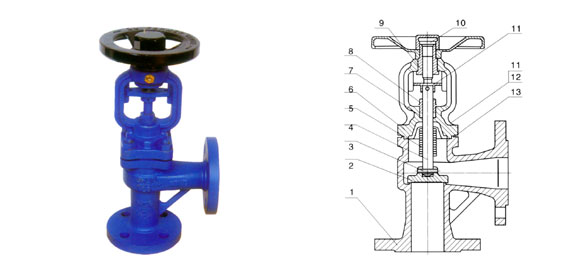 Structural characteristics of German standard right angle BELLOWS GLOBE VALVE