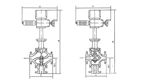 Main dimensions of electric three way regulating valve